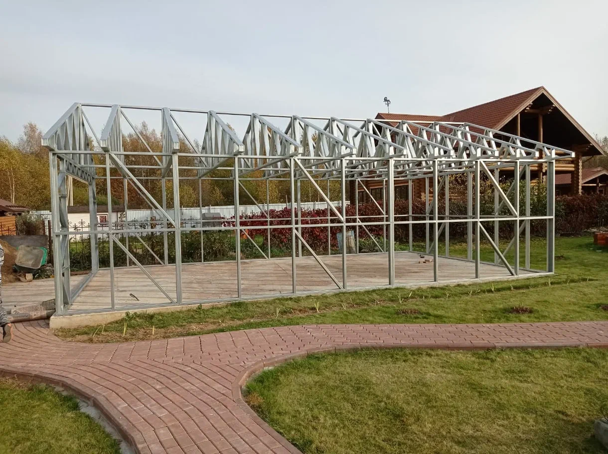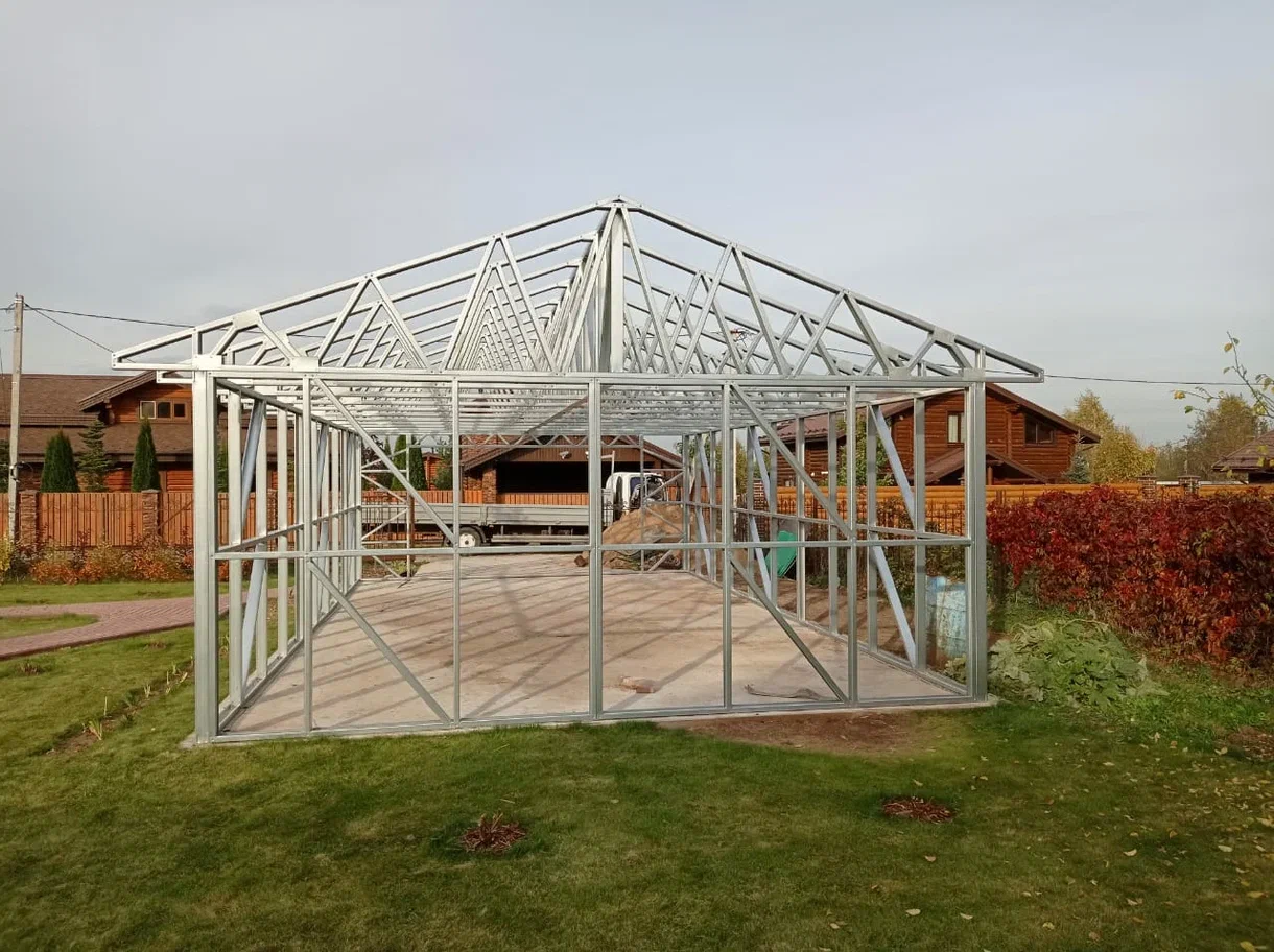 Гаражи из ЛСТК можно строить круглый год, они прочные, долговечные и легко собираются благодаря заводской точности изготовления деталей.